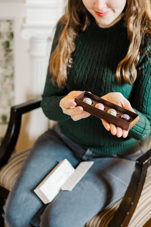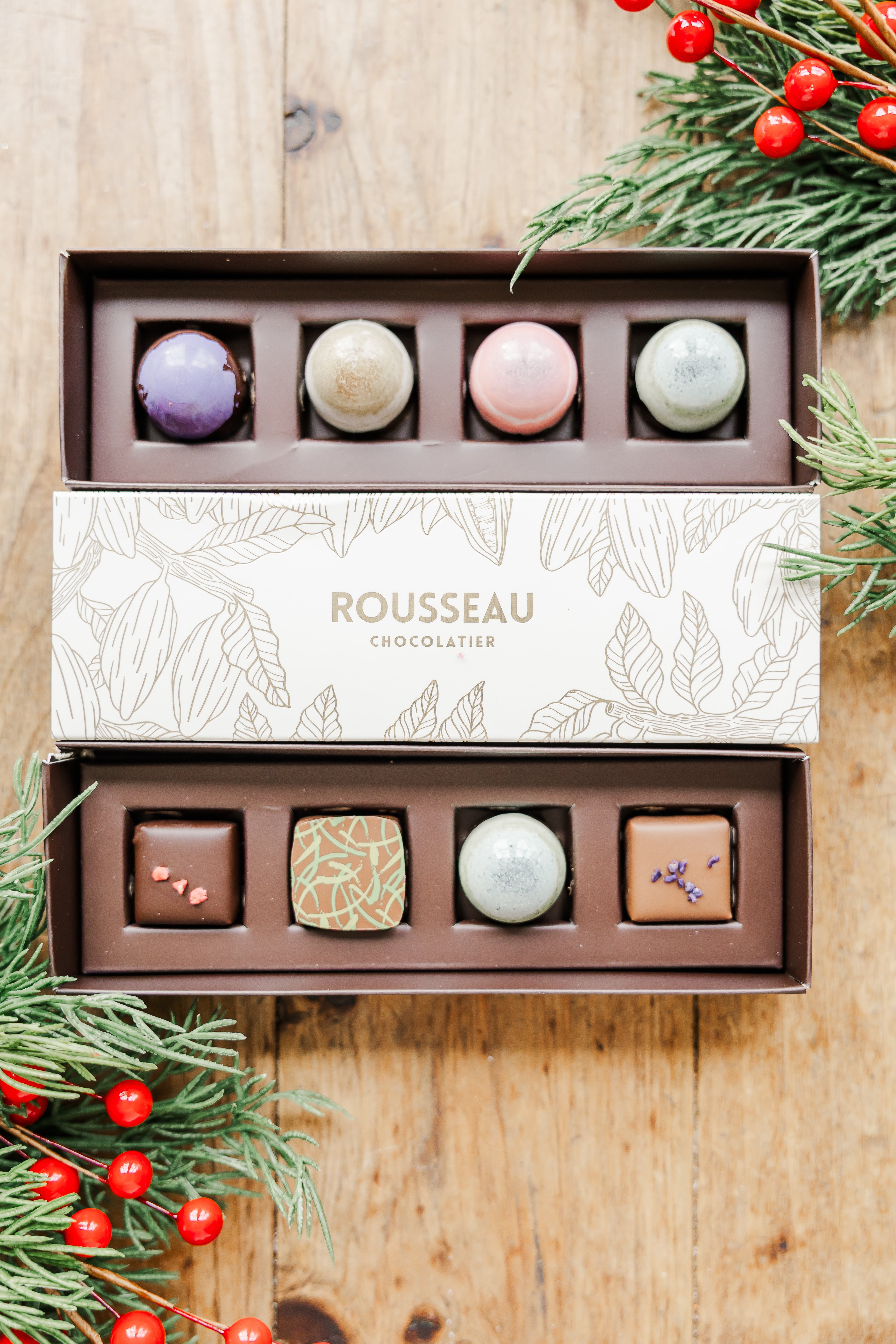 Indulge in a beloved East Coast tradition with Chicken Bones from Ganong in St. Stephen, New Brunswick, crunchy cinnamon candy filled with rich chocolate, a nostalgic Maritime favourite. Complete your sweet spread with artisan chocolate from Rousseau Chocolate in Halifax, Nova Scotia, offering handcrafted richness that brings an extra layer of luxury to the season.