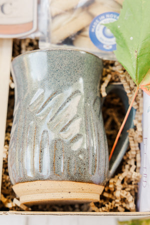 Begin your experience with a steaming cup of Maritime Maple Coffee (100g) by Saltwinds Coffee Company in New Brunswick, served in a handcrafted Stoneware Mug (16oz) by Linko Pottery in Prince Edward Island. Choose from classic white, soft pink, or ocean blue. Each one a beautifully made piece of functional art.